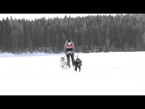 Tänään oli kiva päivä! Aamusta saimme kyläilemään Tuikun ja Jennyn :) Tarkoitus oli taas mennä jäälle, mutta tällä kertaa mukana oli sukset, kahdet valjaat sekä hihnoja. Mutta miksi? No vetämistä varten tietenkin ;) Jenny vaan suksien päälle ja koirat siihen jotenkin eteen ja minä kameran ja nakkien kanssa vähän matkan päähän. Ja siis nehän oikeesti veti! Vinskikin, joka ei ole ikinä mitään vetojuttuja harrastanut (paitsi kesällä yritin rullalaudalla xd ) eli ihan amatööri vielä. Todistusaineistona alla oleva video!
